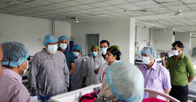 রাজধানীতে সঞ্চালন লাইনে কাজ করতে গিয়ে বিদ্যুৎস্পৃষ্ট হয়ে আহত বিদ্যুৎকর্মীকে ঢাকা মেডিকেল হাসপাতালের বার্ন ইউনিটে দেখতে গিয়ে বিদ্যুৎ, জ্বালানি ও