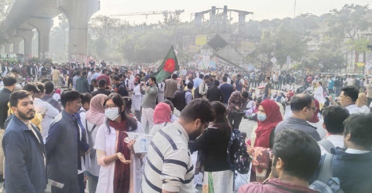 রাজধানীর শাহবাগে চিকিৎসকদের সড়ক অবরোধ
