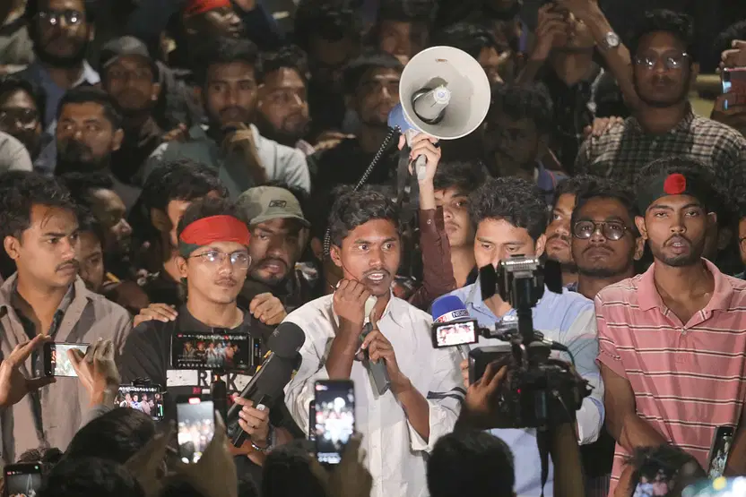 ভারতের আগরতলার কুঞ্জবনে অবস্থিত বাংলাদেশ সহকারী হাইকমিশন প্রাঙ্গণে হামলা ও ভাঙচুরের ঘটনার তীব্র প্রতিবাদে উত্তাল ঢাকা বিশ্ববিদ্যালয় ক্যাম্পাস। রাতে শিক্ষার্থীরা
